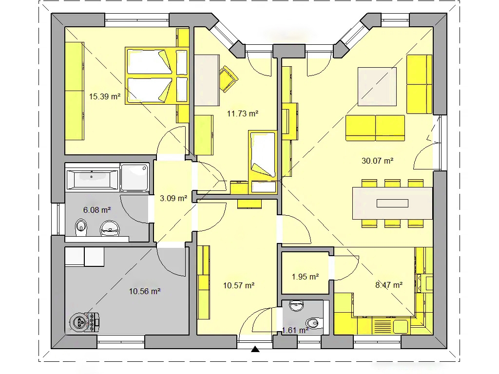 Sa 3 sobe na 100 m² neto površine, odnosno 129,42 m² bruto površine, Model KS-130 nudi optimalan raspored prostorija za dobrobit malih porodica ili starijih koji žele da žive bez prepreka do starosti. Dobro osmišljen i pametno isplaniran, ovaj plan postaje pravo prostorno čudo, gde svaki stanar ima dovoljno prostora za slobodu. Model NV-130 ne ostavlja ništa da se poželi i savršen je dom za mlade i stare!