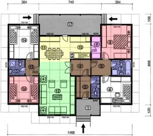Montažna kuća KS-135 građevinske bruto površine 148,36 m2(neto površine 133,74 m2) bez denivelacije unutrašnjeg prostrora. Projektovana kao petosobni stan u kom su pored četiri spavaće sobe, sadržani dva kupatila, wc i dnevni deo sa dnevnim boravkom, kuhinjom, trpezarijom i ostavom. Središnji deo je zauzeo dnevni boravak koji je preko trpezarije povezan sa natkrivenom terasom, a bočne strane su sa po dve sobe koje imaju pristup nezavisnim kupatilima. Nakon natrivenog ulaznog trema, unutrašnji hodnik povezuje dnevni boravak sa posebnim wc-om. Svojim fasadnim izgledom u smislu izbora boja i detalja sa dinamičnim krovom može ovoj tradicionalnoj kući dati nijanse moderne gradnje.