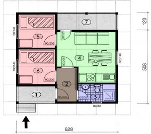 Vikend kuća KS-35 bruto površine 40,45 m2(neto površine 34,81 m2) je projektovana kao trosobni stan na najmanjoj površini od svih prikazanih u našoj ponudi. Dve spavaće sobe i sve ostale funkcionalne celine su pogodne za odmor višečlane porodice. Jednostavan izgled ogleda se kroz četvorovodni krov.