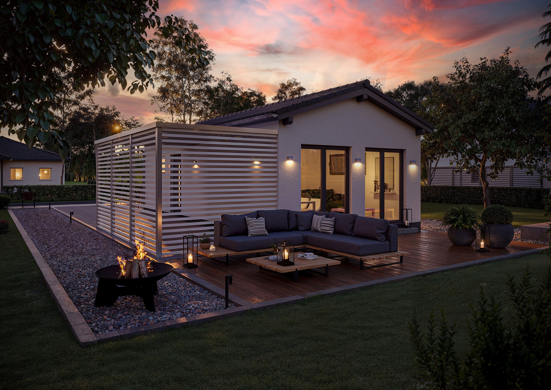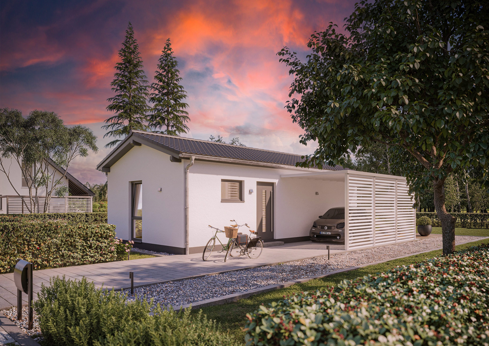 Moguće garažno ili parking mesto za automobil je uzeto u obzir i stoga se neprimetno uklapa u planiranje.